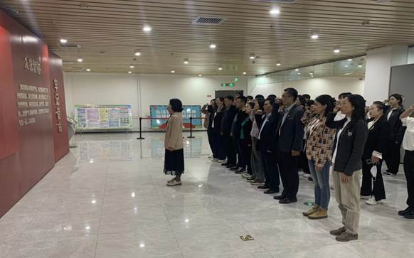 图书馆党总支书记马晓利带领党员在八路军驻新疆办事处重温入党誓词