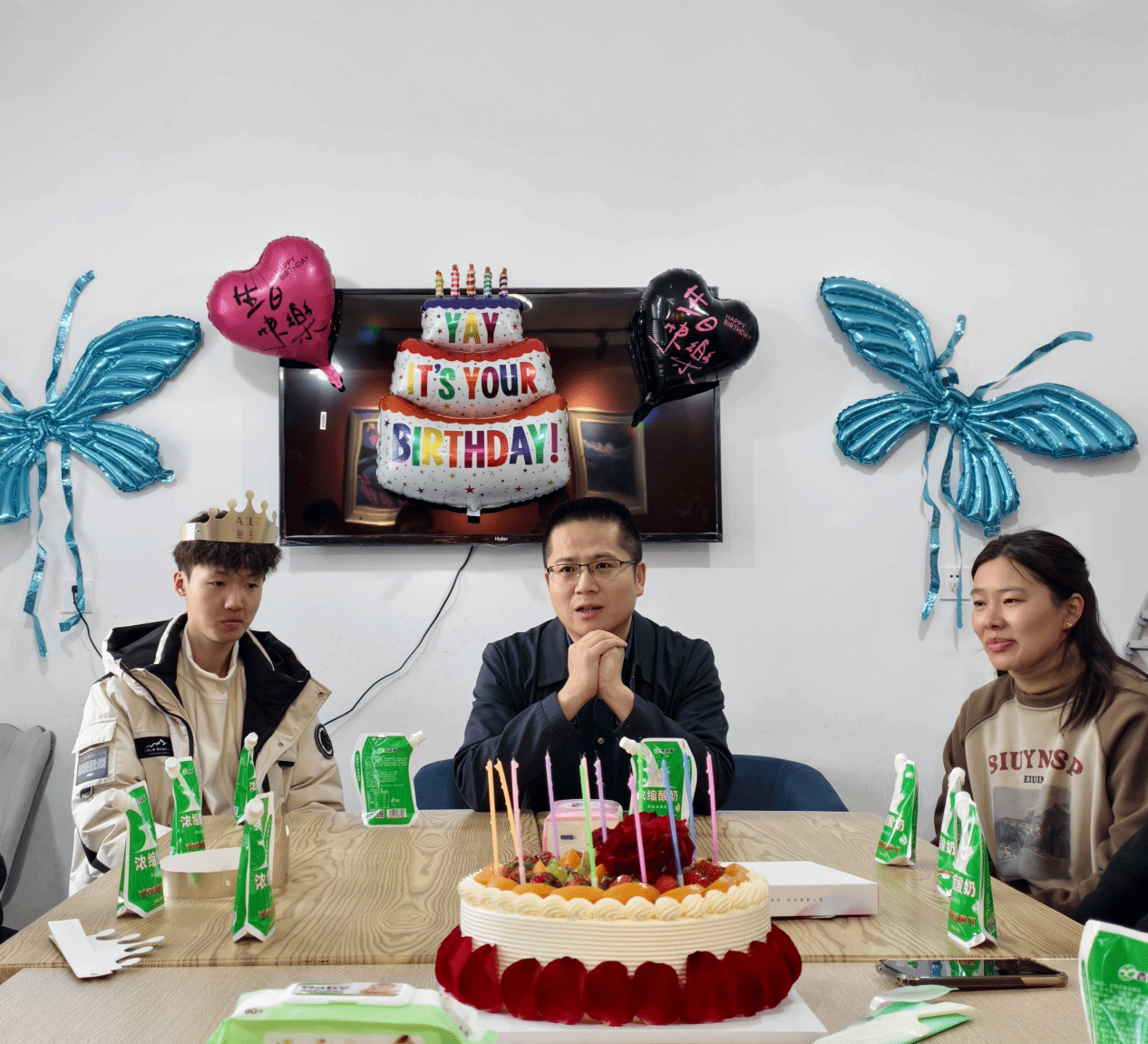 在轻柔的音乐声中,“三进两联一交友”的老师们为寿星们戴上生日帽,过生日的师生们在大家此起彼伏的“祝你生日快乐”中一同双手合十许下美好愿望,眼中满是对学业进步与未来发展的憧憬。