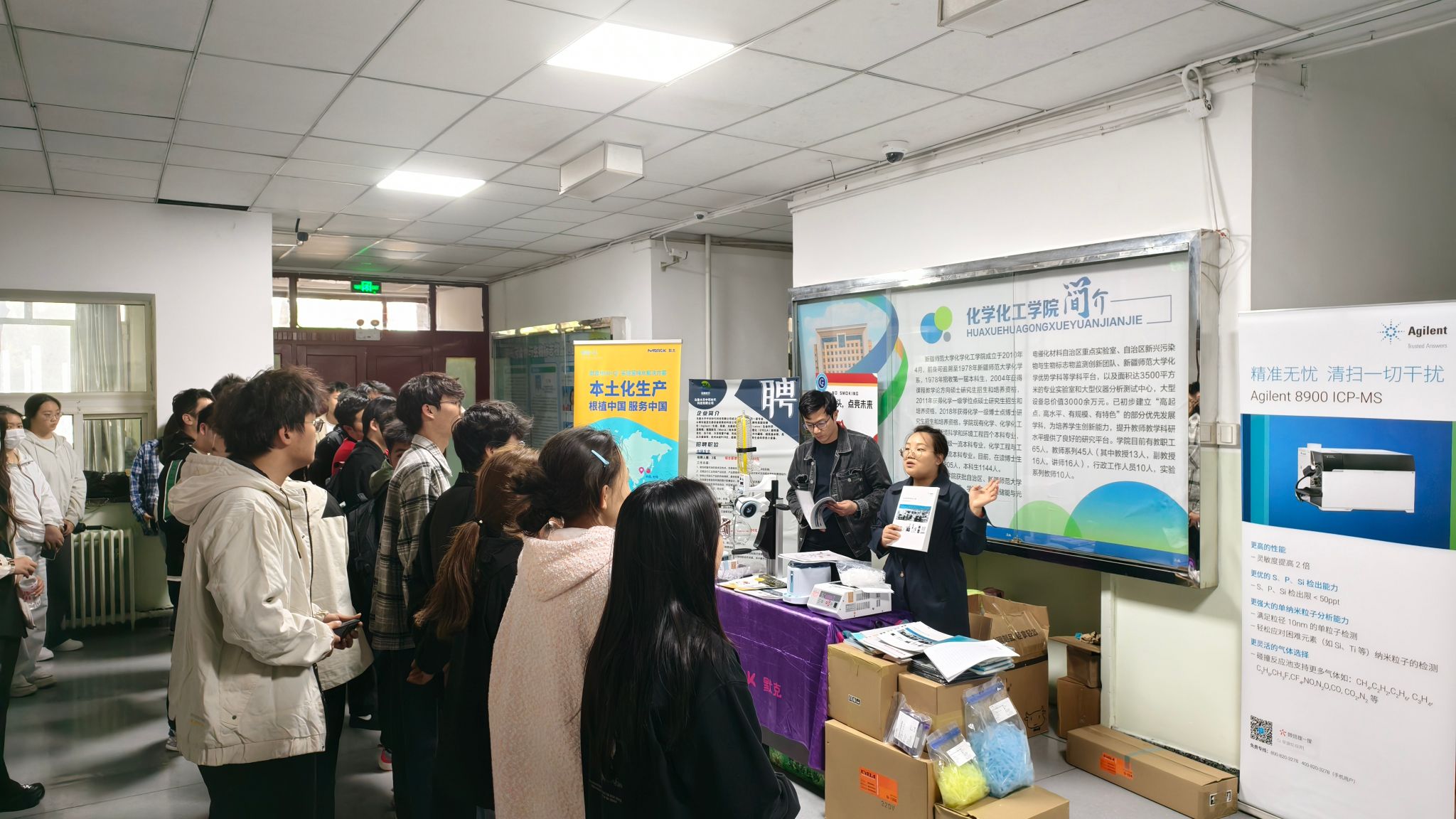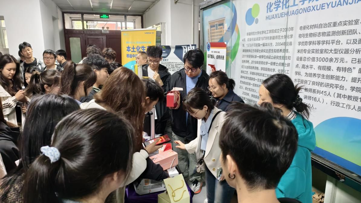 乌鲁木齐中环时代科技有限公司的专家为师生详细介绍了公司多款先进化学分析仪器,同时展示了仪器的性能特点、应用场景及技术优势。活动现场还设置了互动抽奖环节,师生们积极提问,专家们耐心解答,气氛热烈。