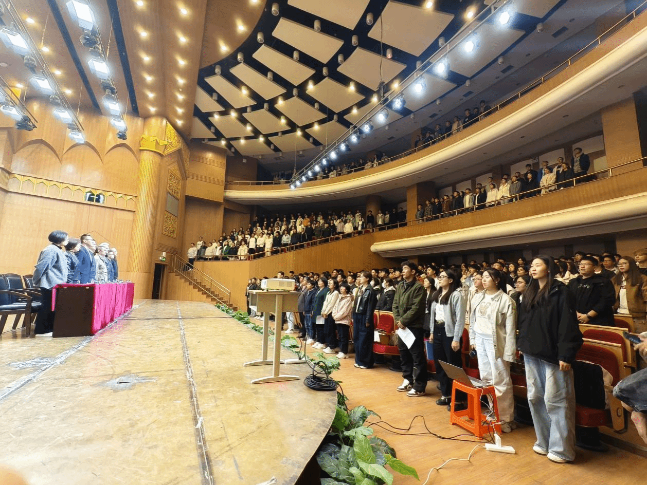 全体师生肃立,国歌声响彻音乐厅。这是青春与家国的共振,是化院学子“强国有我”的铮铮誓言。