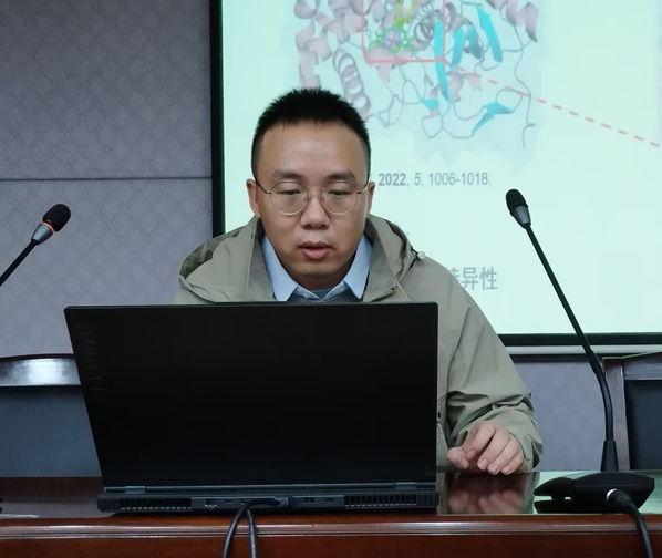 报告中,胡帅帅博士详细介绍了酶催化位点周围的独特微环境在人工仿酶催化剂的设计,利用MOFs材料结构明确、易调控的优势探究催化位点周围不同密度的Lewis酸位点微环境、催化位点周围特定距离不同类型微环境以及同一类型但不同距离的微环境对催化性能的影响。
