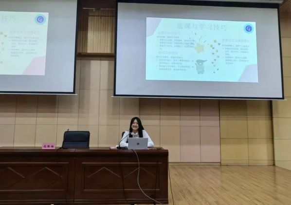 来自环境工程21-6班的刘玥璇,向新生分享了他们最感兴趣的选课技巧,她在学生组织的经验和在学校的生活经验,并告诉新生要“追随光,感受光,成为光。