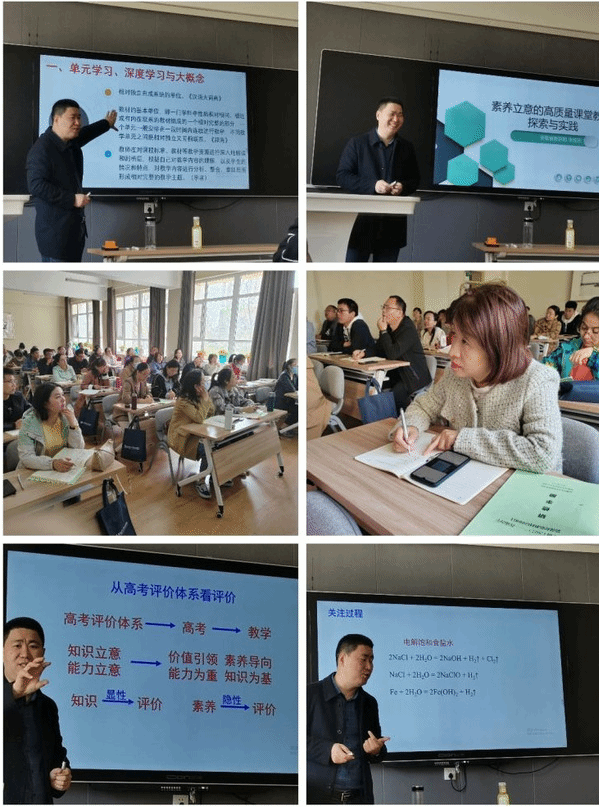 安徽省教育科学研究院朱成东老师就《新课程背景下教师专业发展》、《素养立意的高质量课堂教学》等题目讲解了深度学习,大单元教学以及核心素养的关系,阐述了“教-学-评”一体化教学的特点,以生动的课堂教学和实验案例来引导我们转变教学方法,关注知识形成过程以及思维方式的变化。利用数字化实验教学案例,使我们学会了教师应该不断地创新,勇于质疑并尝试解决问题,多阅读文献,敢于做实验,不断地完善自己的教育教学方法,从而得到个人专业发展。