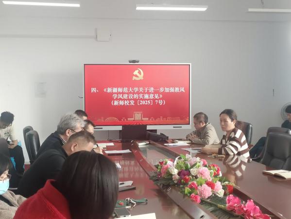 领导班子带领全体参会人员学习了2025年全国教育大会精神、自治区党委十届十三次全会精神、《新疆师范大学2024年工作总结》以及《新疆师范大学关于进一步加强教风学风建设的实施意见》四个方面的内容,为新学期各项工作的开展筑牢思想根基。