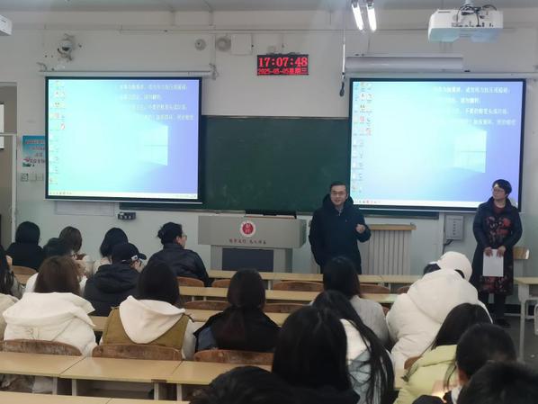 党委书记张鑫通过真实案例,教育学生树牢底线、红线,遵守网络安全法律法规、校纪校规;刘和文院长以案为纪,教育引导学生不造谣、不信谣、不传谣,不发表不当言论,做到依法上网、文明上网、健康用网。