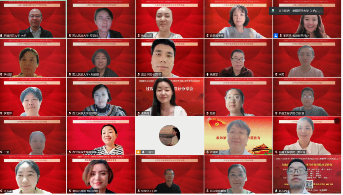 为加强大学化学教育领域的交流与发展,提升教师的教学研究水平和论文写作能力,2025年5月10日晚,自治区“天山英才”关明名师工作室、《仪器分析智慧课程》新形态教研西行项目组特邀朱玉军博士作题为“大学化学教育研究与论文写作”的专题讲座。名师工作室负责人、项目组负责人、新疆师范大学党委常委、副校长、新疆天山职业技术大学党委书记关明教授策划组织了本次教研活动,并担任主持人。项目组成员单位老师及新疆师范大学化学与化工体育直播