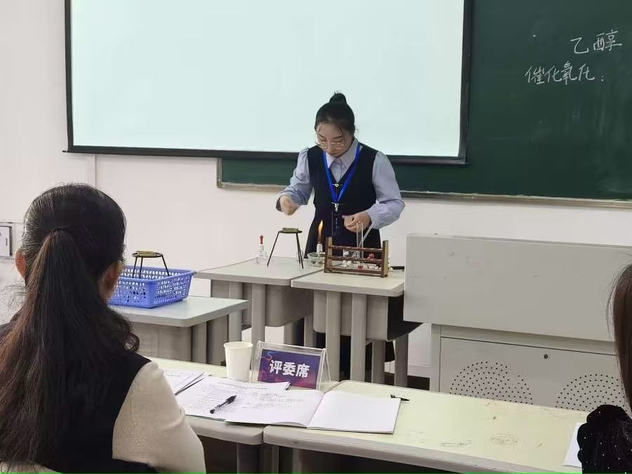 学子扎实的教学基本功。在指导教师董玲老师的耐心指导,研究生“菁师”指导团的帮助下,选手们发挥各自特点,按照新课标的要求,结合化学学科核心素养对课程内容不断优化、打磨;选手之间互享思路、共磨课件、互评模拟课堂,在协作中提升,尽显互助学风与教学潜力,最终多名选手斩获佳绩。