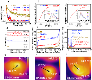 形貌和结构表征显示,CT-35异质结构在Co-N/O配位作用下,由原本的COF三维网络和CS“肺泡”自发重组为高度有序的万寿菊状超结构,层板厚度显著减薄(约6.4 nm),形成紧密界面,同时单原子Co位点均匀分散于整体框架中,无聚集现象,实现了原子级分散与纳米限域协同的光催化结构。载流子动力学和结构分析表明,CT-35异质结构通过Co-N/O桥键显著延长电子寿命并降低激子结合能,促进自由电子生成并迁移至催化表面,同时空心CS柱撑效应增加层间距,优化孔径分布以利于传质。光照下的光热效应进一步加速表面反应,而非独立驱动析氢,从而实现高效光催化性能。