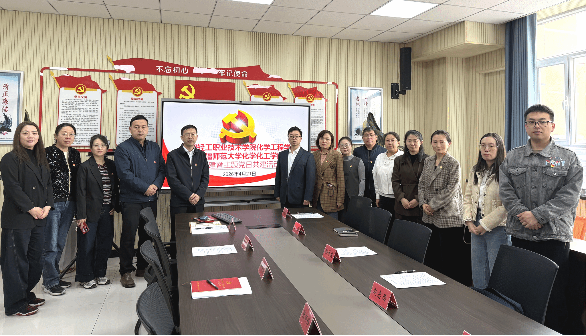 教工党支部联合开展支部主题党日。活动伊始,全体党员教师面向鲜红党旗,庄严肃立、举起右拳,重温入党誓词。铿锵誓言回荡现场,进一步强化党员教师的责任意识与使命担当,激励大家以更饱满的热情投身教育教学与人才培养工作。在同上一堂课环节,朱美虹同志领学主题党课,引导党员教师坚守立德树人初心,厚植育人担当。随后,两个支部全体党员教师共同观看党风廉政警示教育片《心渊》,告诫党员教师以案为鉴、守好底线、不踩红线,切实加强自身党性修养,增强廉洁自律意识,自觉接受组织和群众的监督。最后,双方围绕化工专业核心课程建设、学生就业引导和有效管理等核心议题深入研讨,通过分享经验、剖析问题、凝聚共识,最终在优化课程体系、强化实践教学、拓宽就业渠道、推进学科共建等方面达成多项合作意向,为后续深化校校协同、提升人才培养质量筑牢根基。